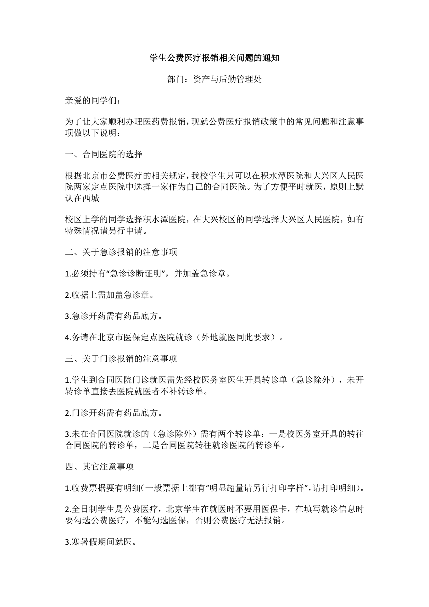 关于员工公费医疗报销相关问题的相关通知的解释权归十大正规买足球网站医务室,即日实施,请同学周知!西城校区医务室 张复兵 68322392,大兴校区医务室 韩京京 61209616。