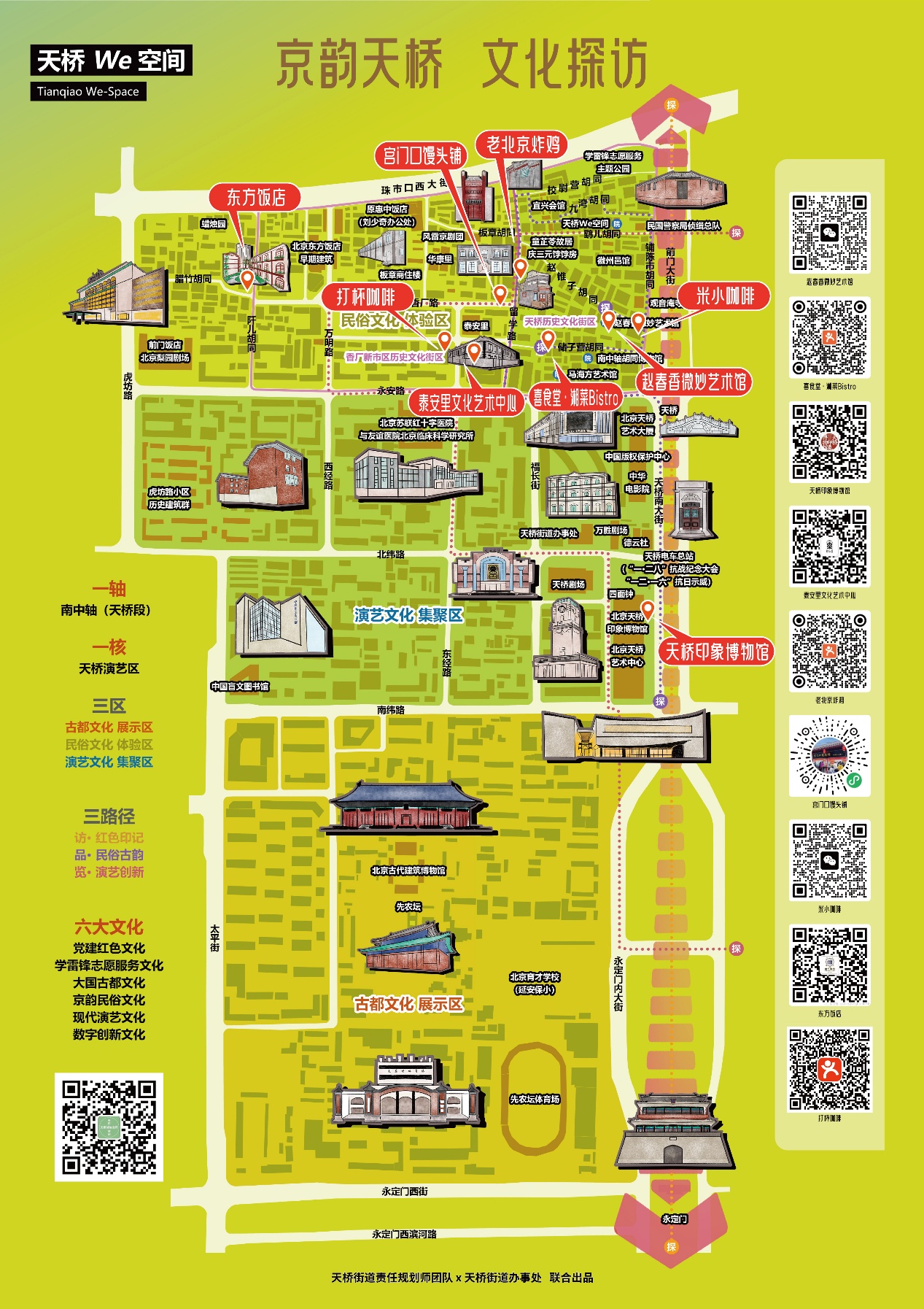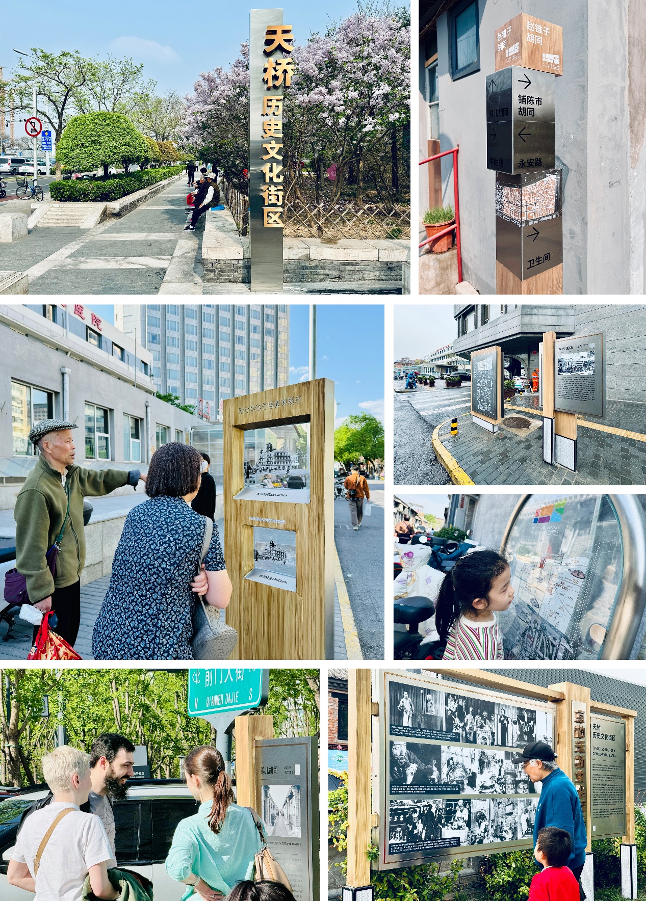 自2024年起,在公司责任规划师团队与街道办事处通力合作下,结合天桥北部平房区小微公共空间更新项目,同步布置了探访地图、方向指引、历史说明等形式多样的“京韵天桥·文化探访”导览设施100余处,市民和游客可通过扫码进入数字平台,实现“线上线下融合”的文化探访新模式。