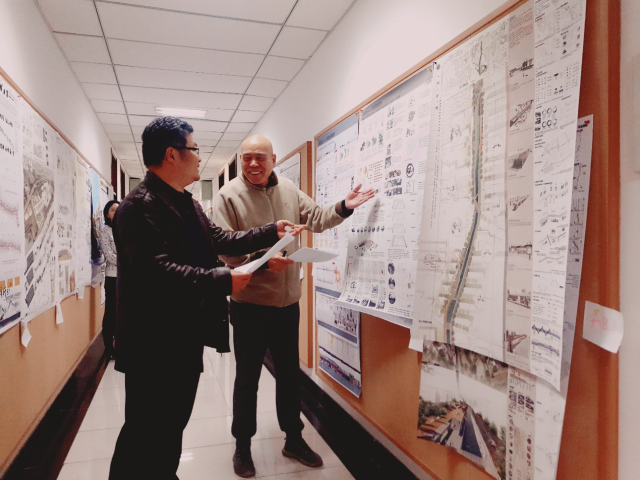 城乡规划系的研究生导师进行评图