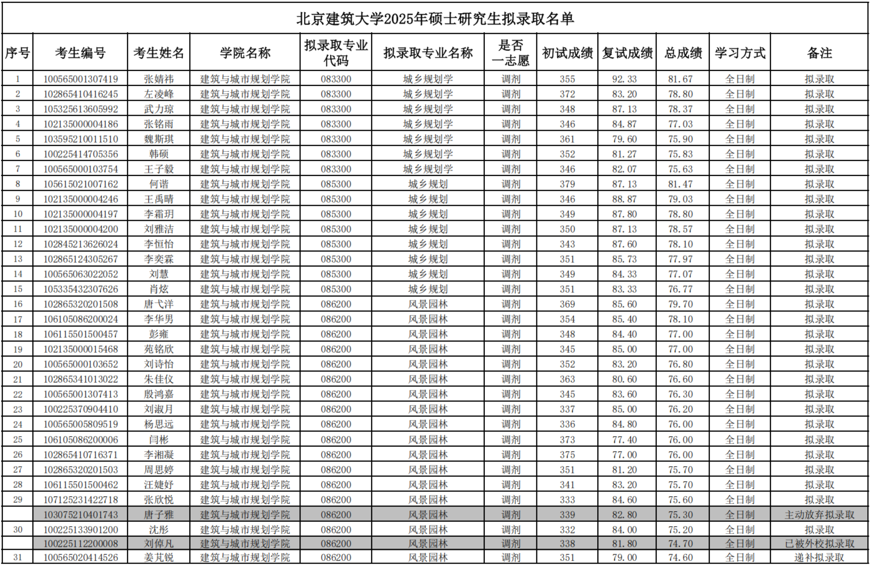 十大正规买足球网站2025年硕士研究生拟录取名单(调剂)更新版