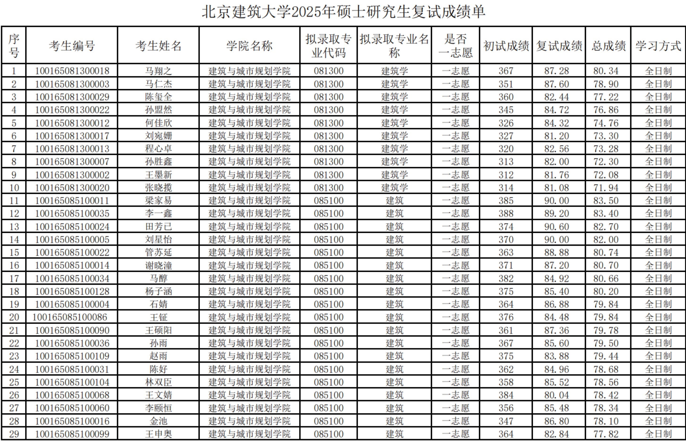 十大正规买足球网站2025年硕士研究生复试成绩(一志愿)