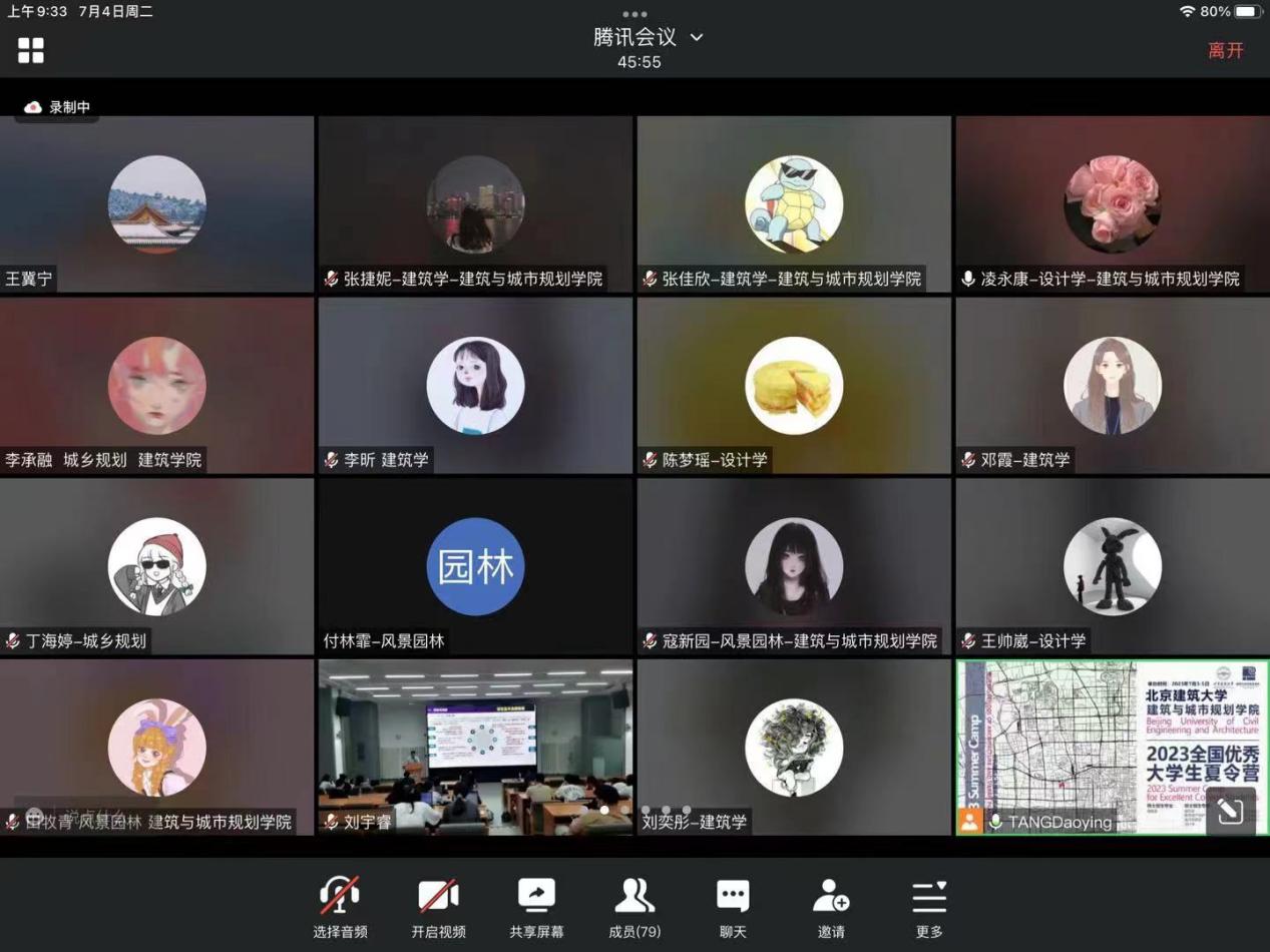 5日上午,建筑学、城乡规划、风景园林、设计学、建筑遗产保护5个学科专业共组成7个考核小组,分别由欧阳文教授、郝晓赛教授、杨一帆副教授、孙立教授、丁奇教授、傅凡教授、赵希岗教授担任组长,各学科骨干教师孟璠磊、商谦、铁雷、甘振坤、黄庭晚、张琳、王兵、马全宝、齐莹、贺鼎、陈志端、李勤、石炀、单彦名、张颖异、贾梦圆、刘玮、王婷、王如欣、顾月明、张学玲、徐海韵、王瑞琦、张笑楠、韩风、阚玉德、边谦等教师,线上线下同步开展夏令营考核工作,对营员的专业知识、综合素质、英语听说能力等进行全面考查。在考查过程中,营员们普遍表现出优异的综合素质和专业能力,以及对于北建大十大正规买足球网站的关注。考核小组教师也以高度的热情与营员开展学术交流切磋。经过考核,共选拔出40名营员授予“优秀营员”称号。